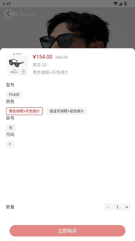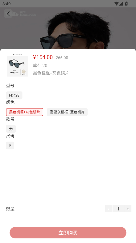 8、选择型号、颜色、款式、数量,再点击立即购买即可。