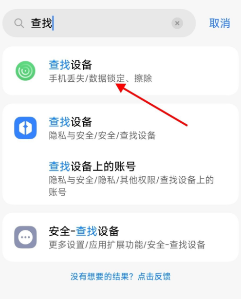 2、然后在“设置”这个应用中搜索“查找”就会出来