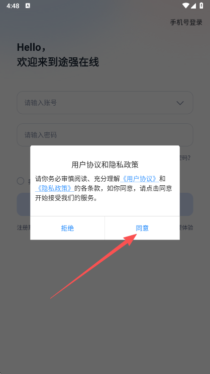 2、阅读同意途强在线的用户协议
