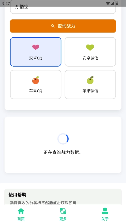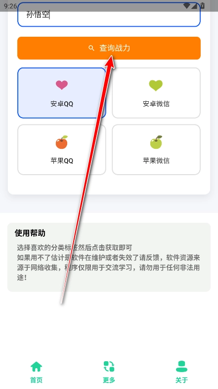 1、启动王者战力助手应用,进入软件界面后,在查询区域输入目标英雄的名称,接着选择对应的区服;安卓用户需选择QQ或微信账号类型,苹果用户同样要按此方式添加区服信息,这样能防止出现查询失败的情况。