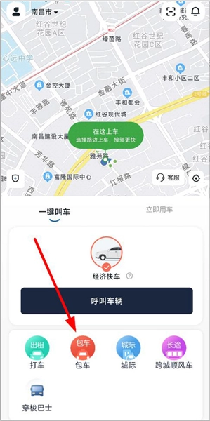 1、打开易至出行APP,登录后进入主页。主页上提供一键叫车、立即用车、打车、城际服务、跨城顺风车等功能选项,用户可直接点击“包车”选项。