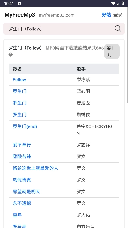 1、在本站安装myfreemp3并打开后,进入首页向下浏览