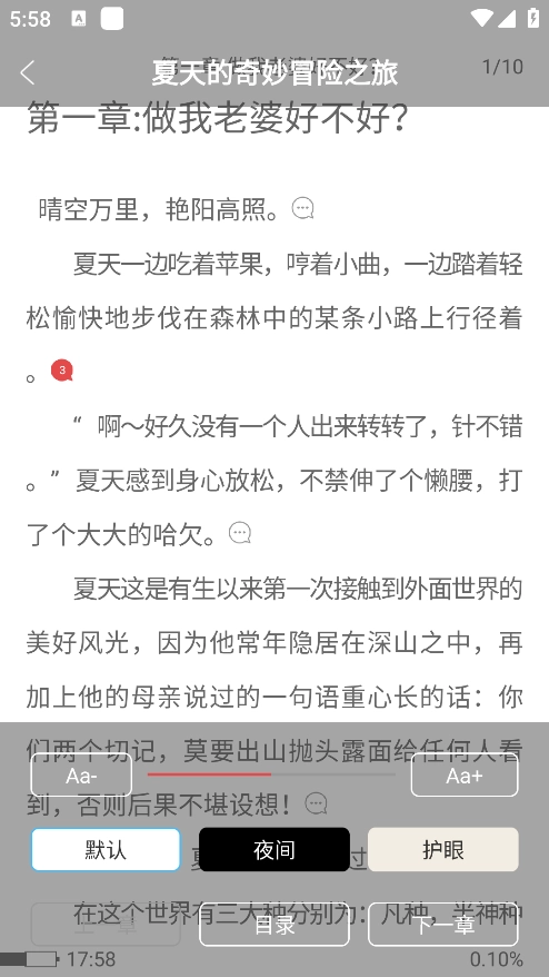 鲸云轻小说是一款面向轻小说爱好者的移动端阅读应用,核心优势在于海量资源库、个性化阅读体验与社区互动功能,旨在为用户营造沉浸式、的纯净阅读空间。平台覆盖奇幻、科幻、恋爱、冒险、悬疑、校园、古风等多元题材,能够满足不同用户的阅读喜好;同时与作者及出版社保持深度合作,每日更新热门作品的最新章节,让用户及时追更。此外,鲸云轻小说还拥有众多独家原创作品,为用户带来新颖独特的阅读体验。在阅读设置上,支持字体大小、背景色、亮度、翻页方式等自定义选项,方便用户打造专属阅读环境;同时提供夜间模式、护眼模式,适配不同光线场景,有效保护用户视力。平台还会基于用户的阅读历史和偏好,精准推荐相似作品,帮助用户发现更多感兴趣的内容。