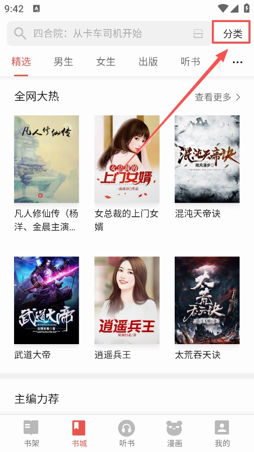 1、打开软件进入到书城可以看到各种小说