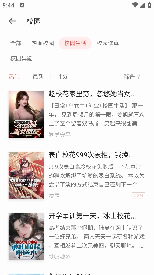 3、选择喜欢的类型后可以查看超多的小说