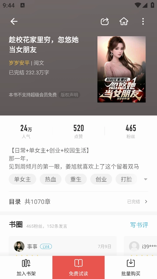 5、然后点击免费试读即可进行阅读