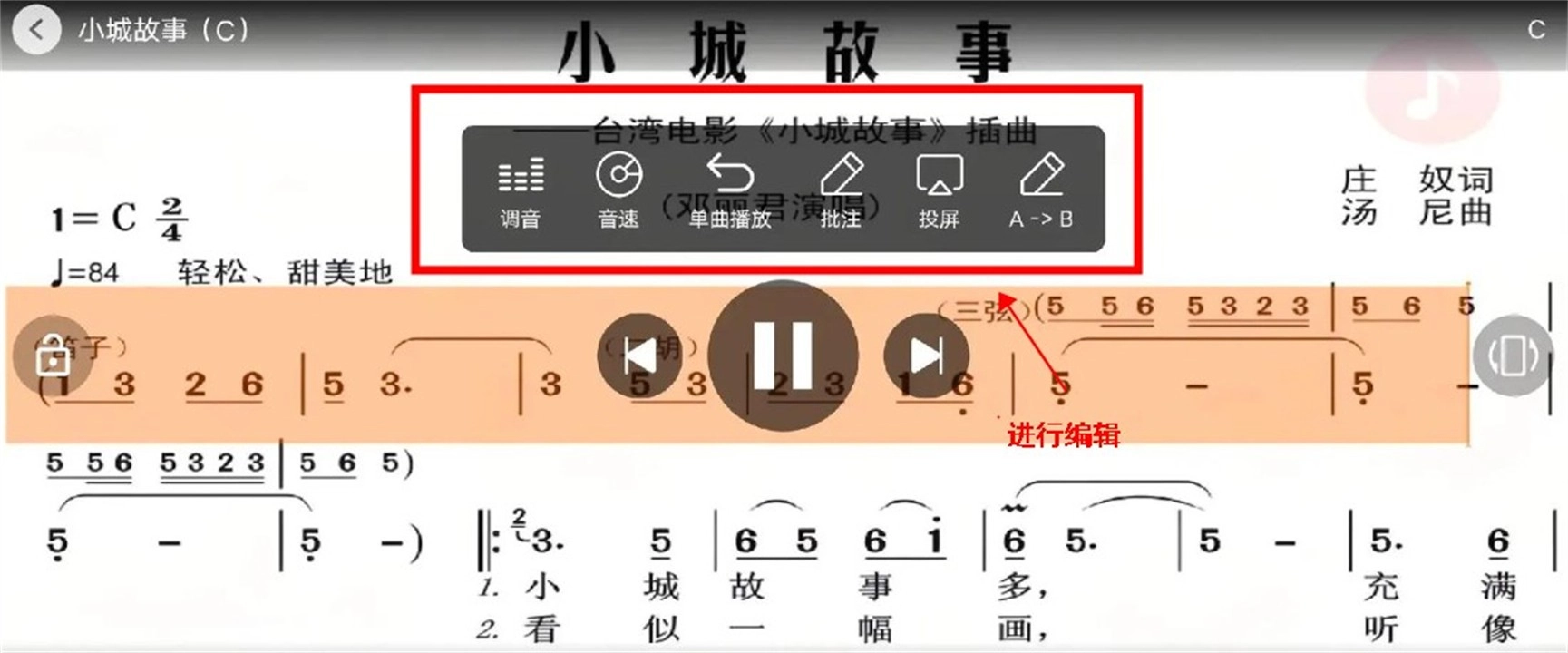 4、用户选择想要的曲谱之后可以在里面进行编辑。