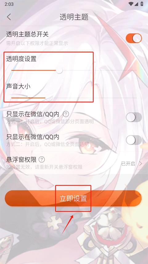 3、设置动态壁纸需从相册里挑选一段视频,静态壁纸则要选择一张图片;导入素材后,可对壁纸的透明度和声音大小进行调整,完成后点击“立即设置”按钮即可。