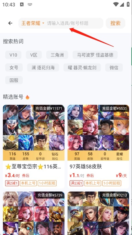 1、用户首先在本站租号宝。