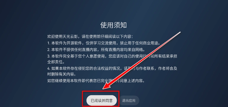 1.打开天光云影,点击已阅读并同意。