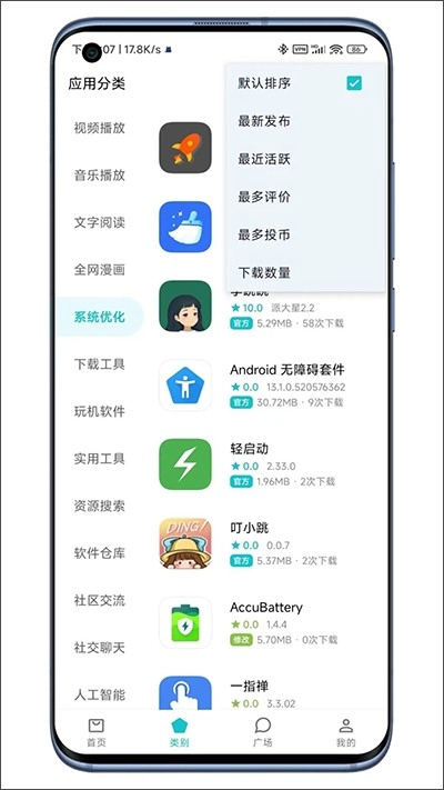 在这里,你可以依据所需的应用类别筛选合适的应用。应用类别还设有多种排序方式,通过按喜好排序,能快速找到心仪的软件。