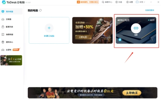在【我的电脑】可以查看到已购买的云电脑,点击【连接】开启云电脑