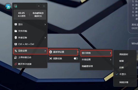 7、悬浮球菜单还可以自定义设置,单独显示网络延迟/帧率/码率