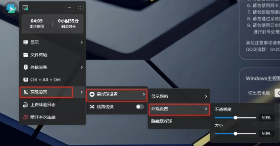 8、自定义悬浮球的外观显示,可按需调整不透明度和大小