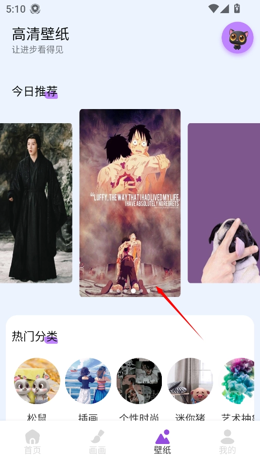 首先,我们在软件首页点击下方的“壁纸”选项,跳转到壁纸界面。
