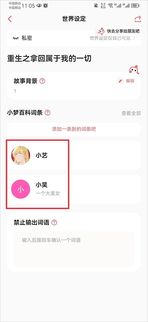 4、最后在人物词条界面里点击“开始聊天”,就能和自己创建的角色对话了。