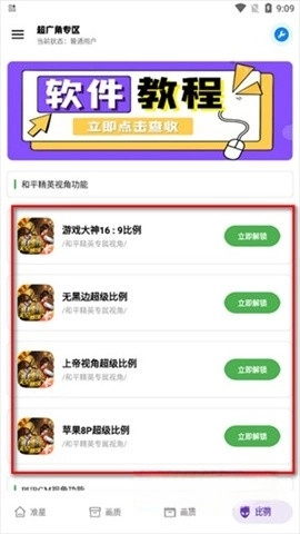 5、在“比例”设置页面中,能够解锁无黑边超级比例、上帝视角超级比例等相关功能。