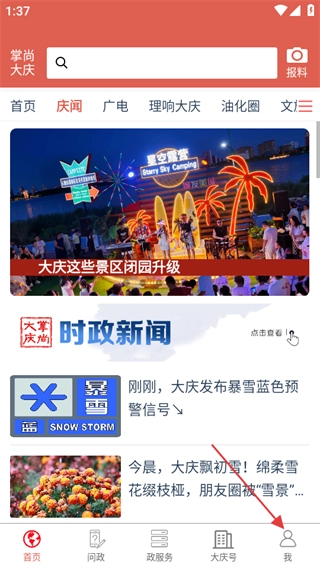 1、进入掌尚大庆首页,点击底部我,进入个人页面。