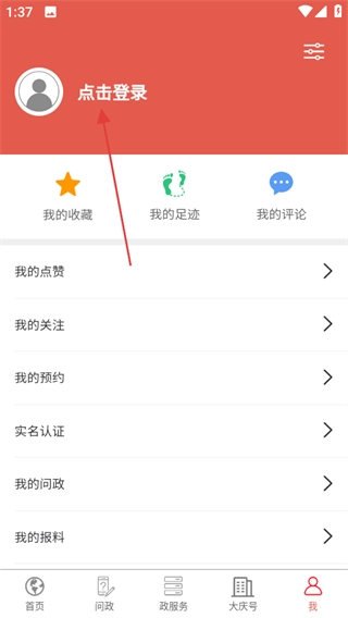 2、在个人页面,点击点击登录,进入登录操作页面。