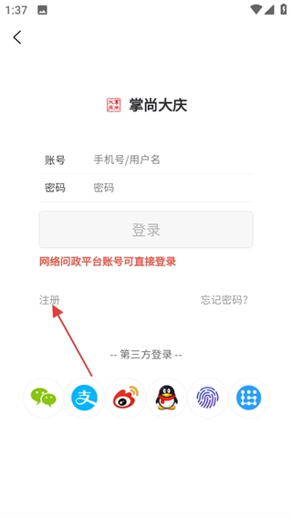 3、在登录页面,点击注册,进入注册操作页面。