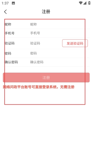 4、在注册页面,填写信息后,点击注册,完成账号注册。