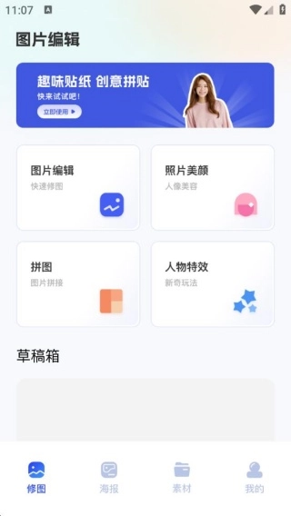 2、包含图片编辑、美颜、拼图、人物特效、海报拼图等丰富功能,无论是基础修图需求还是创意创作场景都能满足。