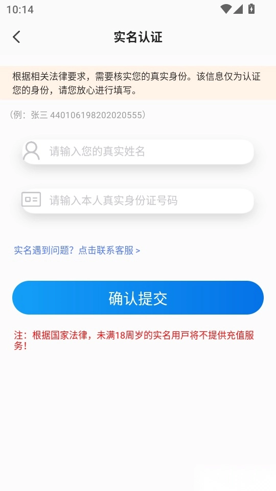 5.用户输入真实姓名和身份证号后,点击“确认提交”按钮即可完成操作。