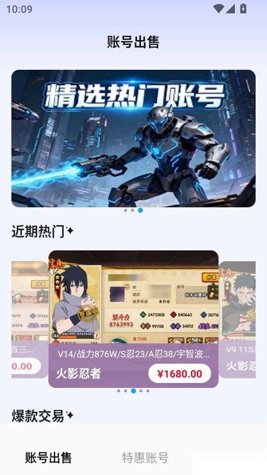 软件拥有许多热门游戏账号交易资源,推荐账号超级丰富;