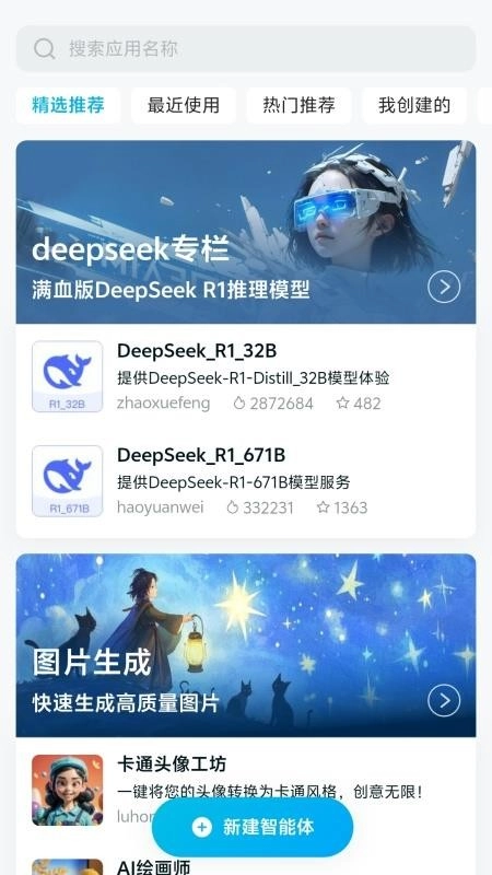 你可以通过应用名称一键搜索,找到各类你需要的AI智能体,进而使用对应的AI工具。