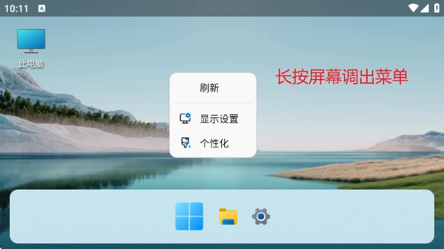 2、在桌面界面长按屏幕,即可唤出功能菜单,其中包含一键刷新桌面、调整显示参数、切换主题风格、自定义壁纸等个性化设置选项,操作简单直观,与真实Windows系统的交互逻辑高度契合。