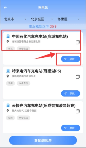 3、选择具体充电站点击导航前往该地点。