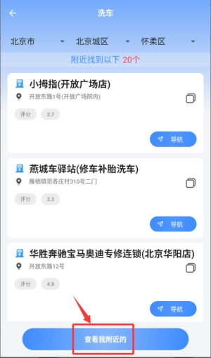4、通过洗车功能查看周边服务网点分布。