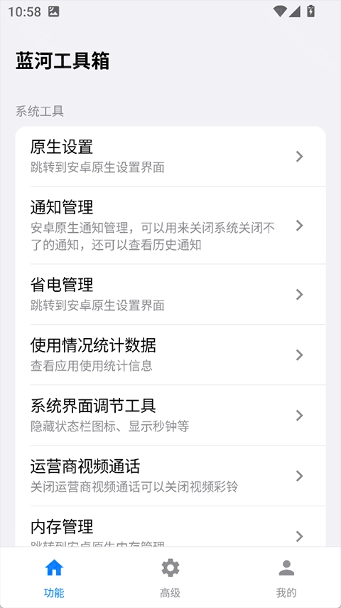 蓝河工具箱vivo版整合了多种实用功能,能够满足不同用户的各类需求,助力用户轻松管理手机、提升使用体验。这款软件专为vivo手机打造,可精准完成优化,确保与vivo系统完美适配。更多实用功能也在持续更新中,感兴趣的朋友可以在本站获取。