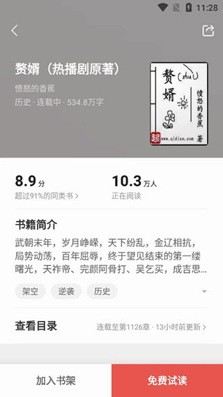 4、就连近期热度很高的电视剧《赘婿》的原著,也能免费阅读;