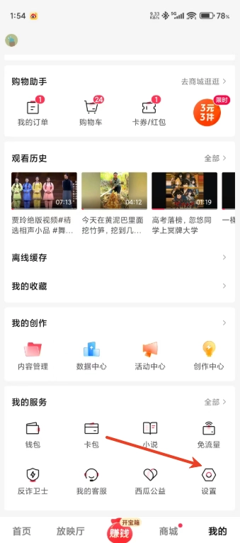 等待一会后,视频缓存完成,点击右下角【我】按钮,进入到个人界面。