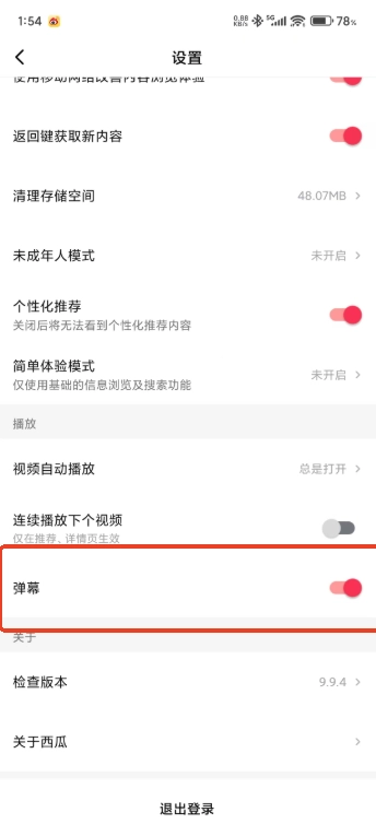 4.向下滑动将弹幕打开,