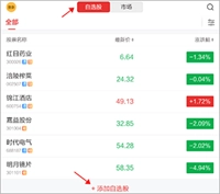 1、启动软件后,在行情界面找到“自选股”选项并点击,接着选择“添加自选股”功能。