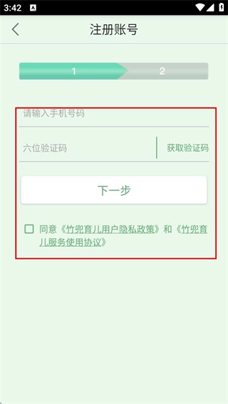 4、在注册账号页面,输入信息,同意相关协议后点击下一步。