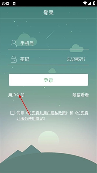 1、打开竹兜育儿,在首页点击我的,进入个人中心页面。