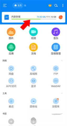 1、启动软件,点击“内部存储”进入存储管理界面。