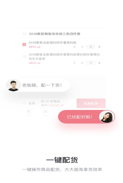 这种配货方式十分轻松,无需再像过去那样在线下面对面点货配货,操作简单又便捷。