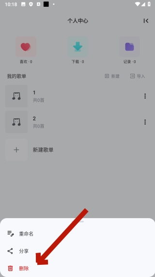 4、在弹窗中,点击【删除】,即可完成歌单删除操作。