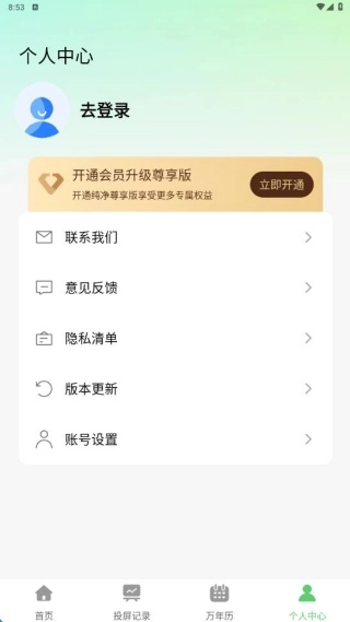 4、在个人中心页面,能快速登录,共享投屏信息,保证数据安全。