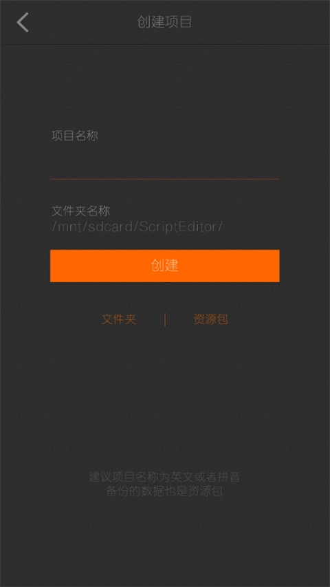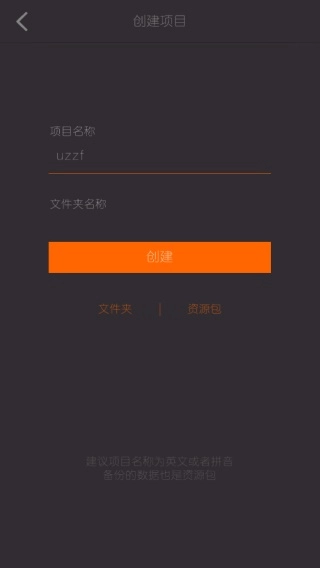 2、填写项目名称和文件夹名称。