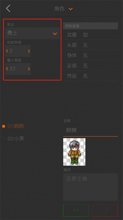 7、左上方可以设置人物职业和等级。
