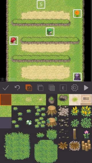 2、操作简单易懂,点击即可挑选素材,按照自己的想法摆放花草树木来布置地图,角色的职业与属性也能随心设计。