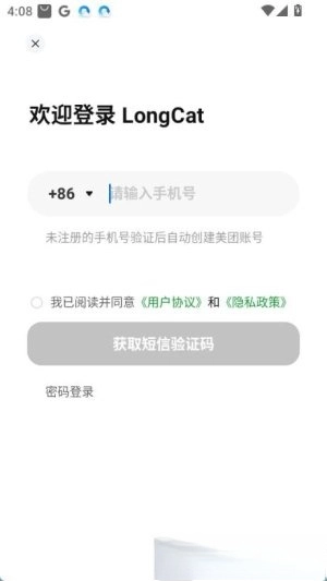 1.启动 LongCat 应用程序,输入手机号码与密码就能直接完成登录操作。
