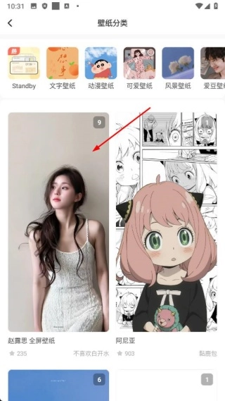2、在壁纸分类页面,点击【目标壁纸分类】,进入图片详情页面。
