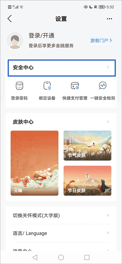 2、然后,在设置界面中找到并点击“安全中心”一栏;