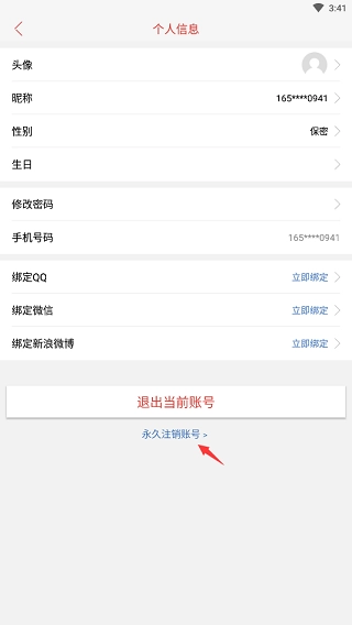 2、点击“永久注销账号”;